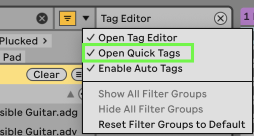 A partir de Live 12.2, también puedes habilitar Quick Tags para ver las etiquetas asignadas a un elemento de un vistazo. Aprende más sobre