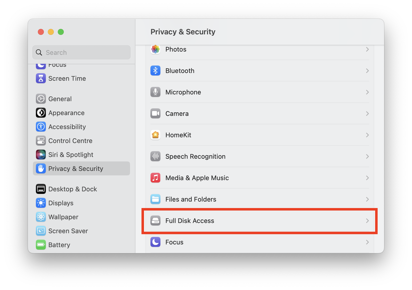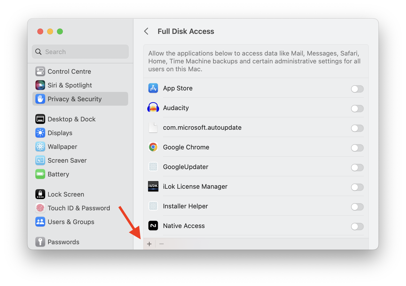 - Tras conceder los permisos de Acceso total al disco y Archivos y carpetas a Live, vuelva a hacer clic en el candado para impedir que se realicen más cambios y, a continuación, reinicie Live.