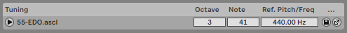 基準ピッチは、チューニングシステムがロードされた後にのみ変更できます。 コアライブラリには、Liveの標準平均律チューニングに一致するチューニング(12-TET(EDO))が含まれていますが、既存のスケール機能では機能しません。
