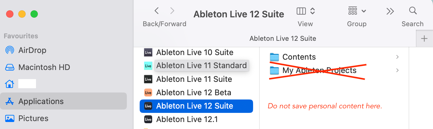 请注意:切勿将个人内容、工程或文件手动保存到 Live 应用程序文件夹中。如果您这样做了,重新安装 Live 会删除这些内容。